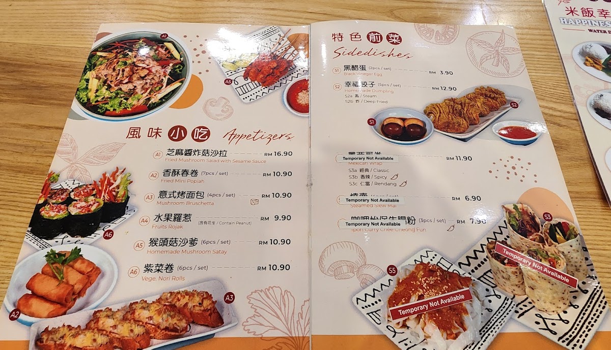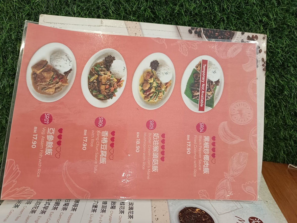 The menu at Fo Guang Shan Water Drop Teahouse Selangor features a wide selection of vegetarian dishes that cater to various meal occasions, including light meals, main courses, and desserts. Visitors can expect to find a variety of noodle dishes such as Vegetarian Curry Noodle, Auspicious Soup Noodle, Curry Mee, Braised Ramen, and Fried Koay Teow. The menu also offers rice-based options like Cheese Baked Rice, Spinach Fried Rice, Mushroom Rice, Vegetarian Nasi Lemak, and Mushroom Pesto Spaghetti.