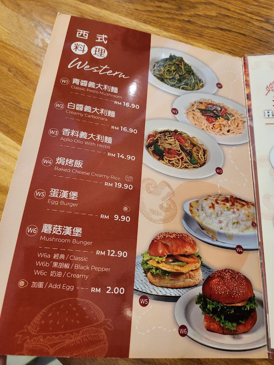 The menu is suitable for casual dining and quick ordering with a self-service system where customers order and pick up at the counter. It offers a moderate variety of dishes which makes it convenient for visitors to choose without an overwhelming number of options. The menu caters well to lunch, casual dinners, and coffee breaks, providing a balance of hearty meals and lighter dishes.